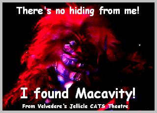 Caught in his own story...well, I told you Cav had quite a big ego. Many thanks for a job well done! (You're not related to Munkustrap, are you?) The theatre's cleared at least of one nuisance...for awhile, anyway. Here's your reward to display as you please. Thanks again! |