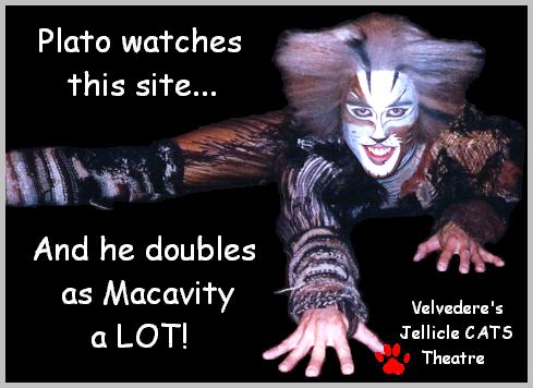 Disclaimer - You all know me: I'm just a fanatic of a certain Broadway show who wanted to create a site expressing his admiration. I had nothing to do with the making of CATS (I wish I did), nor do I have the permission from performers shown to put up their images. All CATS pictures and information here is copyright RUG. I make no profit from this site, and I reveal nothing of the performers' personal lives and avoid slander or libel at all costs. In reference to my fanfiction: they are all original and any resemblance their characters, places, or events have to in the real world is absolutely coincidental and unintentional. I hold all of RUG, CATS's creative team, its performers, and anything related to it in the highest respect. Back to the title page.