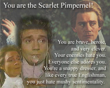 Alright, this is just something I noticed, but what is it with Scarlet Pimpernel songs that has to do with asking questions? Don't these people know anything?! Where's the Girl? We all know that She Was There, right? But that referes to it in the past tense, so where is she now? Where is my Storybook ending...who knows? Who is The Scarlet Pimpernel? I don't know that, either. It must all be a Riddle! (Okay, that was lame...oh well.) |